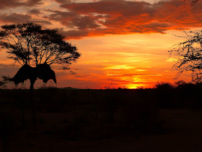 sunset at Okaukuejo in Etosha National Park just after a storm;